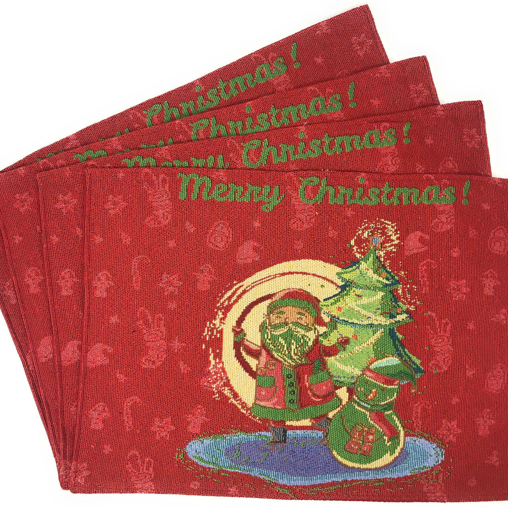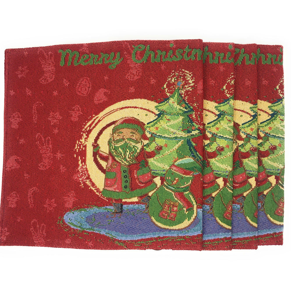 Set of 4-Pieces Red Santa Claus Christmas Tapestry Placemats 13” x 19” (17615)