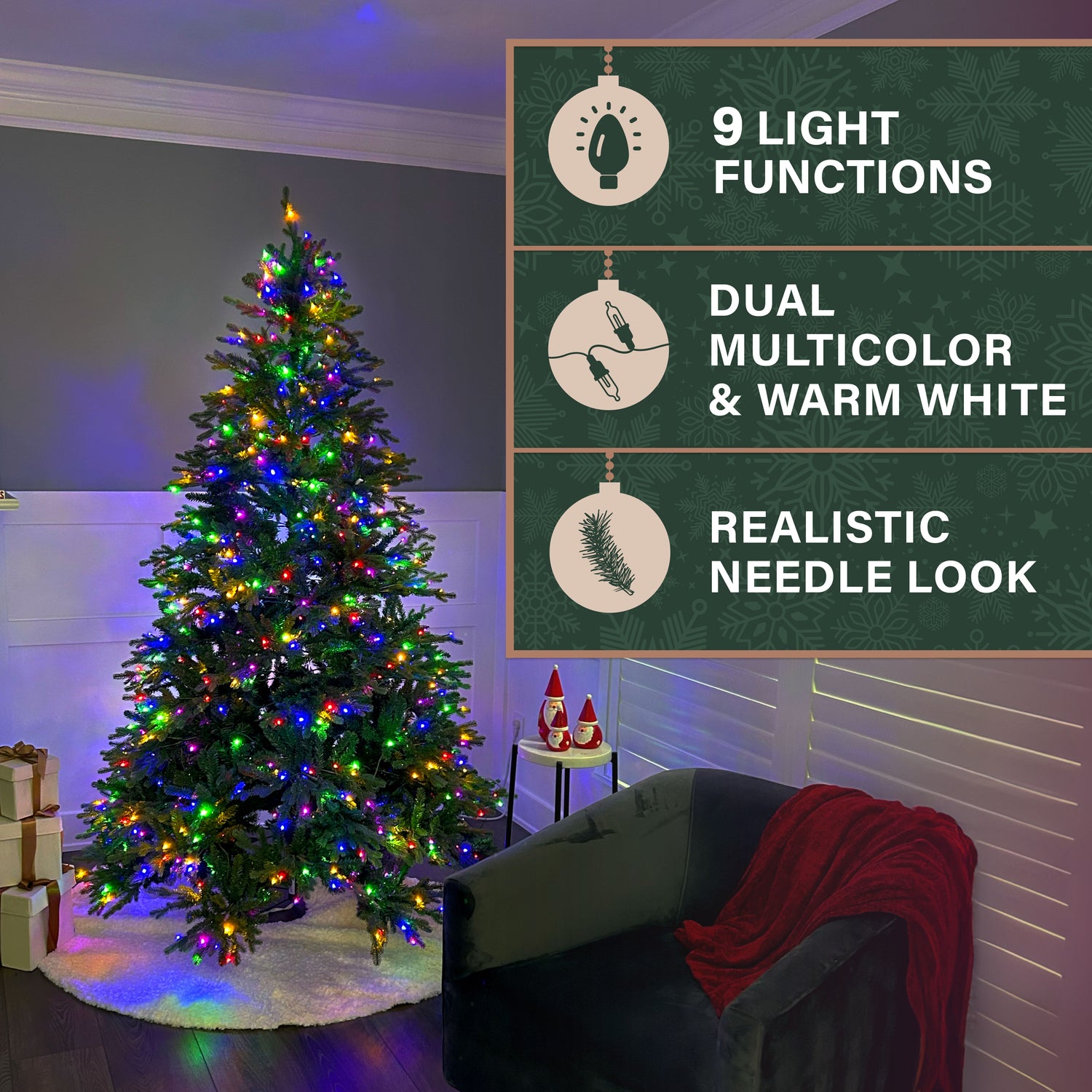 7.5-Ft. Oregon Pine Christmas Tree with Dual Multicolor & Warm White LED Lights
