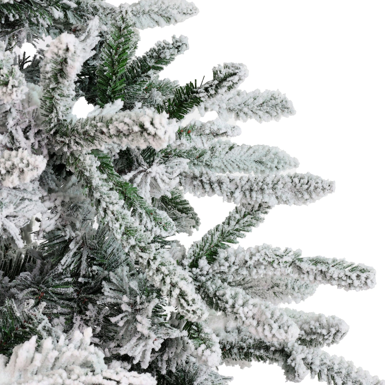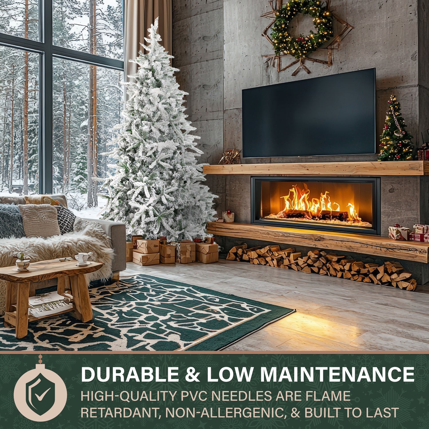 Transform your space into a winter wonderland with the Fraser Hill Farm 7.5-Ft Mountain Pine Flocked Artificial Christmas Tree. This majestic centerpiece stands an impressive 7.5 feet tall, with thick, snowy branches that bring the serene beauty of a freshly frosted forest right into your home. Unlike real trees, this artificial beauty requires no cleanup or maintenance; no dropped needles, no watering, and no worries. Its hinged branch construction and sturdy metal stand make assembly quick and hassle-free, so you can spend more time enjoying the holiday season and less time fussing with setup. And because its unlit, you have the freedom to decorate with your favorite lights, ornaments, and ribbons to match your personal style and vision. Whether kept classic or dressed in bold color, this artificial Christmas tree adapts beautifully to any holiday theme. Durable, dependable, and stunning from top to bottom, it's a showpiece built to be treasured for years to come.