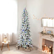 Embrace the spirit of the season with the Fraser Hill Farm 9-Ft Mountain Pine Flocked Artificial Slim Christmas Tree with Dual Multicolor LED Lights. Perfect for smaller spaces or as a stylish accent tree, this slender beauty features realistic branches flocked with snow to bring the peaceful look of a winter forest indoors. Pre-lit with multicolor LED lights, it casts a cozy glow that instantly makes your home feel festive, welcoming, and ready for celebration. Crafted from high-quality materials for long-lasting use, this artificial tree eliminates the mess of fallen needles and the hassle of untangling string lights. Assembly is quick and easy with its hinged branch design, and it stores away just as smoothly at season�s end. It�s an ideal choice for apartments, entryways, or side rooms that need a touch of holiday cheer. For a complete winter wonderland, pair it with matching wreaths, garlands, and other coordinating pieces from Fraser Hill Farm�s Mountain Pine collection.
