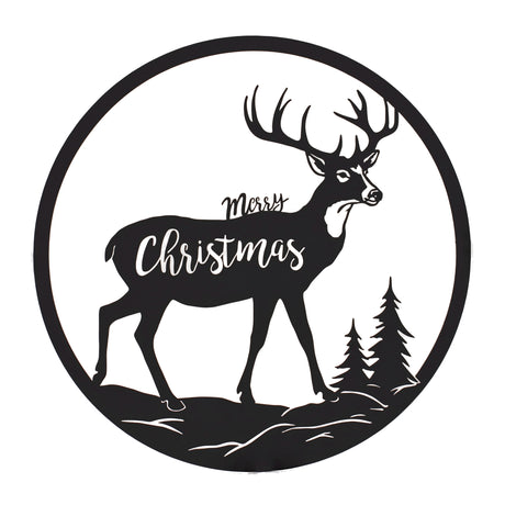 Cut Metal Merry Christmas Deer Plaque 16"D