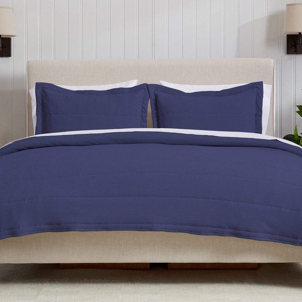 Long workdays and spending time with family at night doesn't leave you with much time. That's why we designed our new Ellie quilt set to be durable and easy to care for, leaving you with more time to relax. Relaxing is made easy with our high-quality, soft microfiber quilt and matching shams because of the lightweight cotton-blend fill. This simple yet elegant quilt comes in three rich colors, perfect for any décor in the bedroom or guestroom.