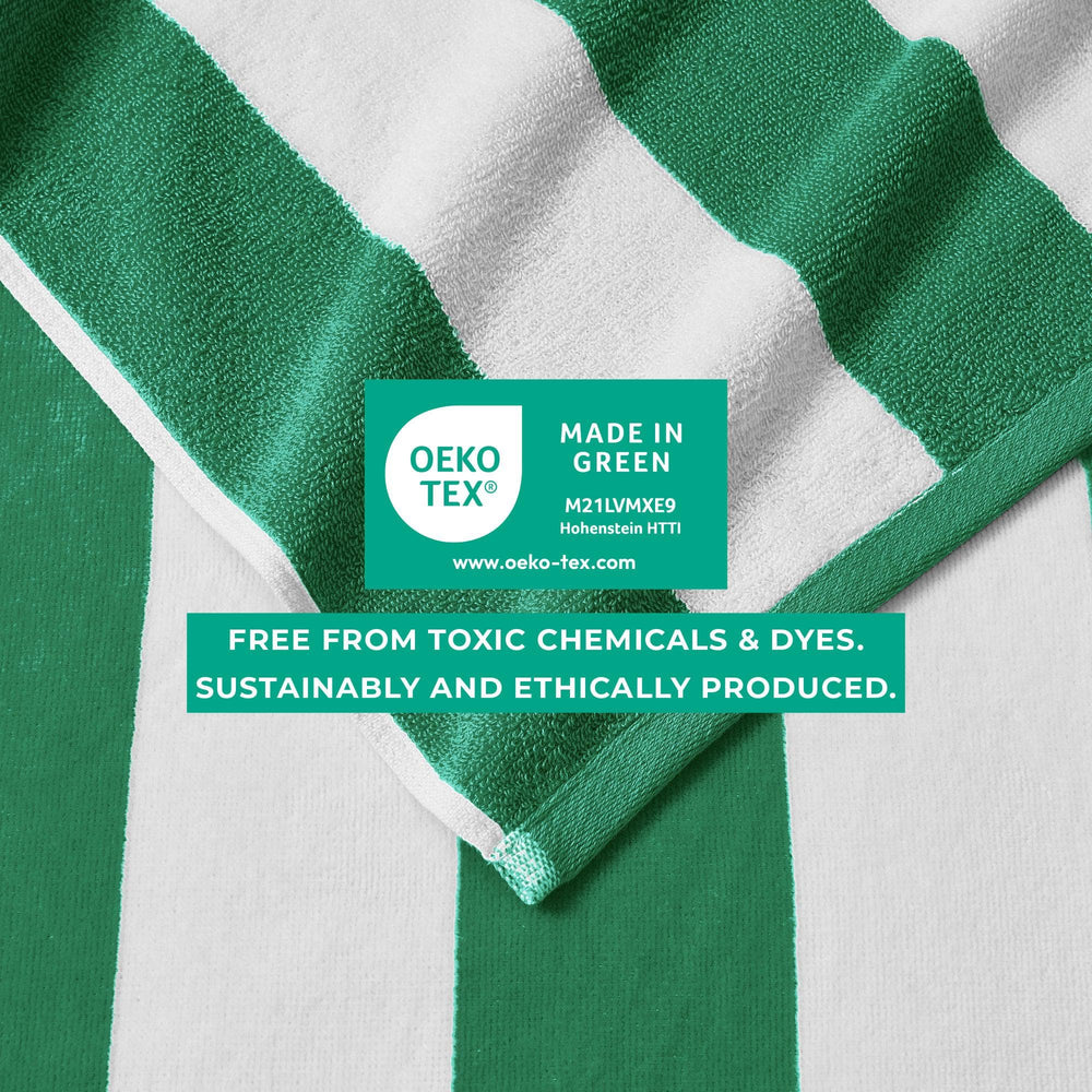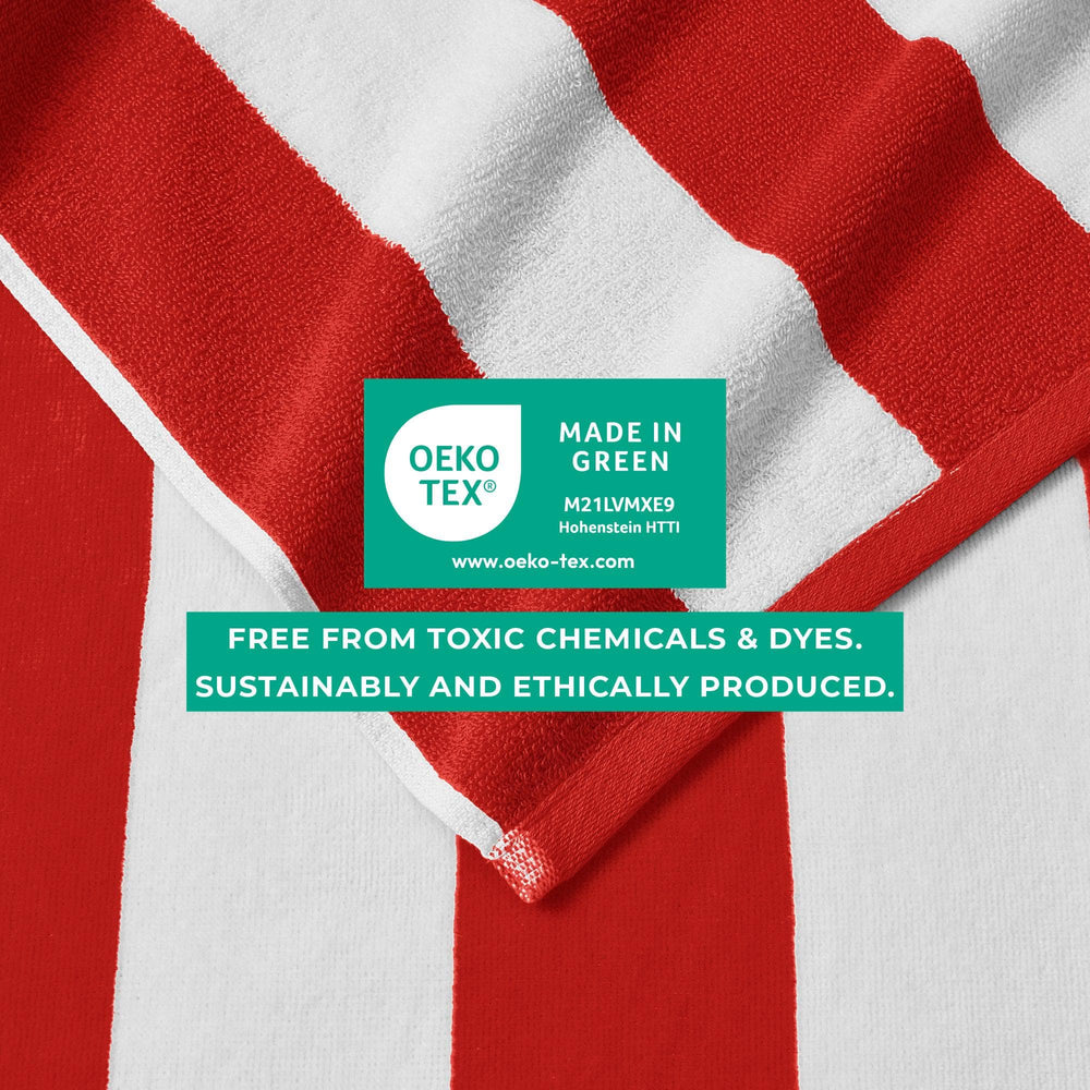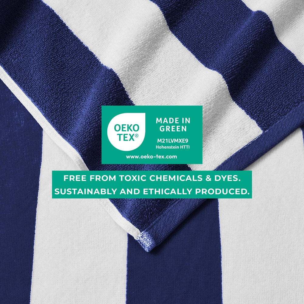 Enjoy an oversized ultra-soft cotton cabana towel! This 100% cotton velour beach towel features the classic cabana style with bright colors for everyone's style. These towels are perfect for a family vacation, camping adventure, or wherever this summer takes you. These cabana towels are timeless and crafted with durable cotton, so they'll last you many summers without losing style or comfort. These soft towels are easily machine washable with like colors, just tumble dry on low and you'll have softer towels each time.