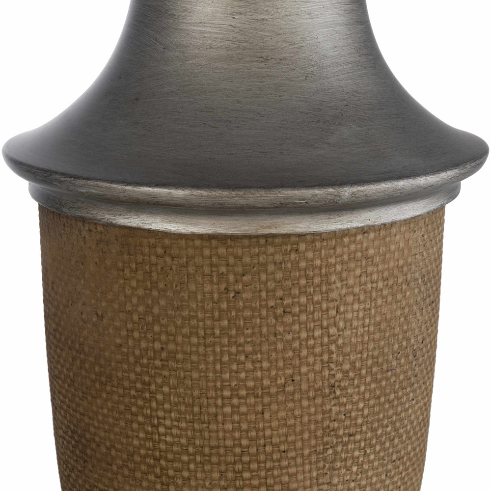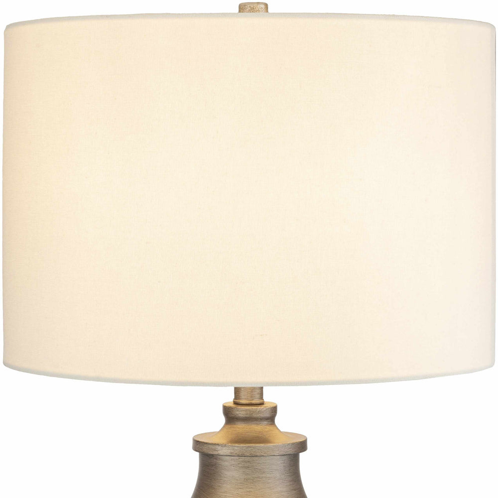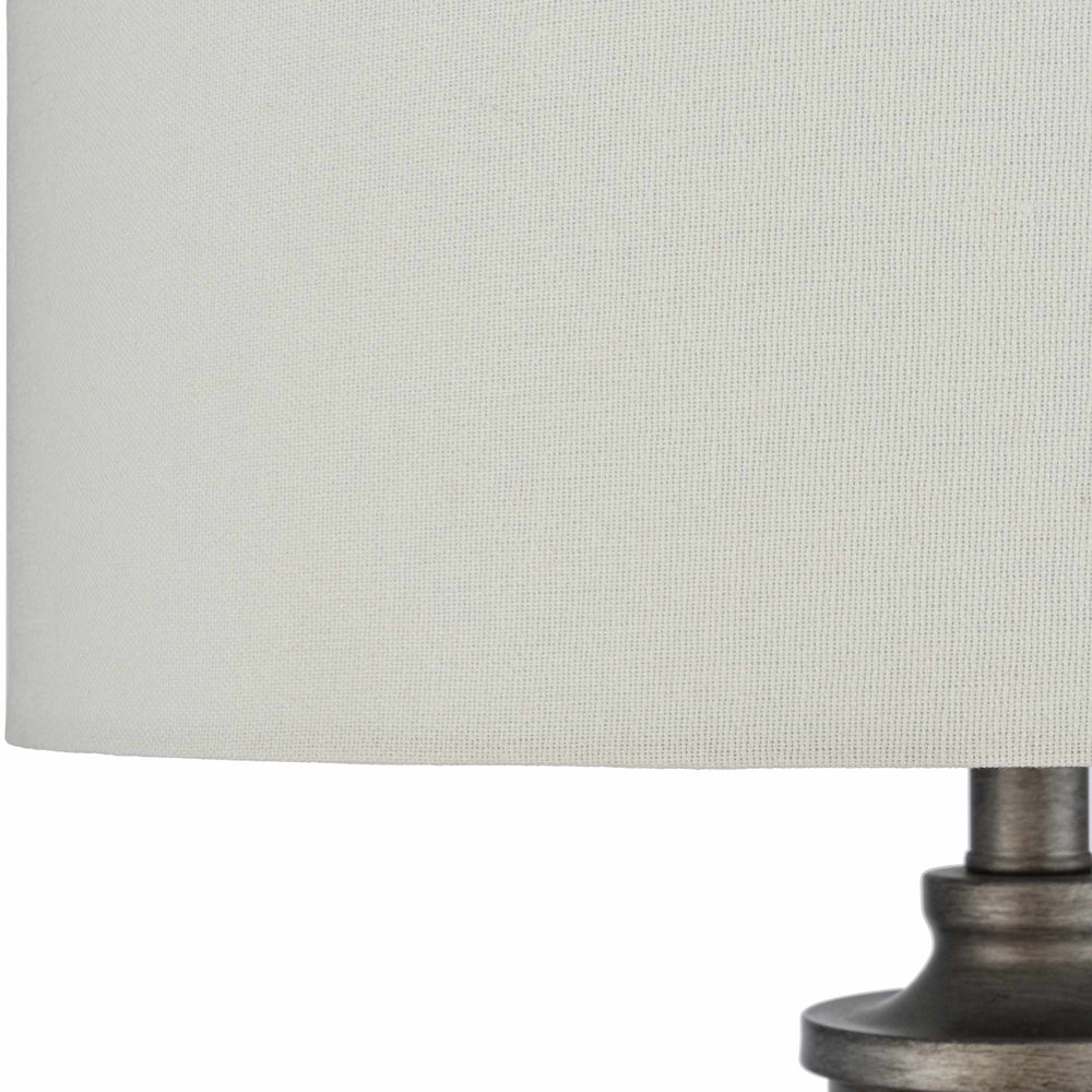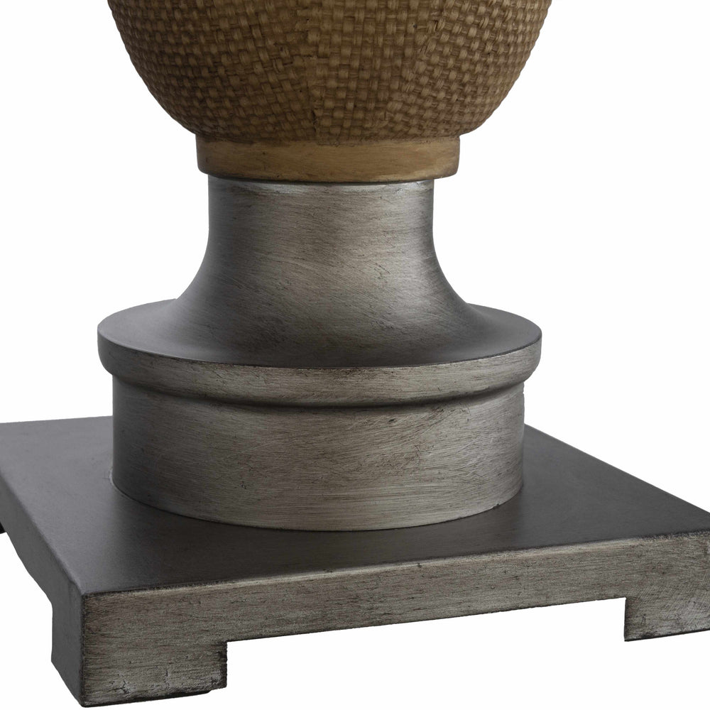 | Material: | Body: Resin / Shade (Outside): Linen / Shade (Inside): Cotton / Finial: Iron |