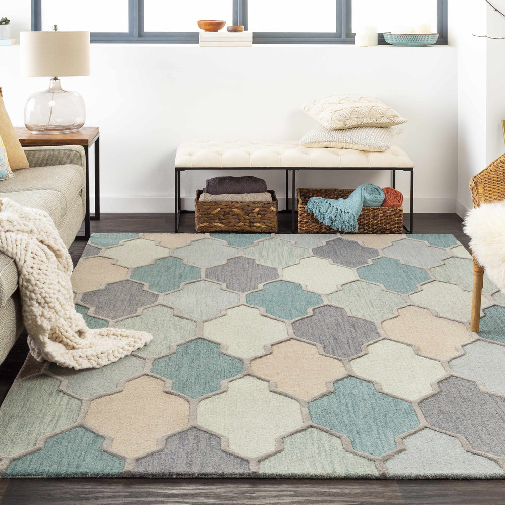 Monteview Sage&Teal Geometric Wool Rug - Clearance