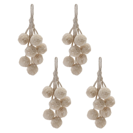 Beige Pom Pom Cluster Drop Ornament (Set of 4)