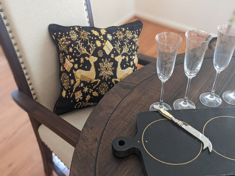 Magical Golden Reindeer Woven Tapestry Throw Pillow Covers 16" x 16"