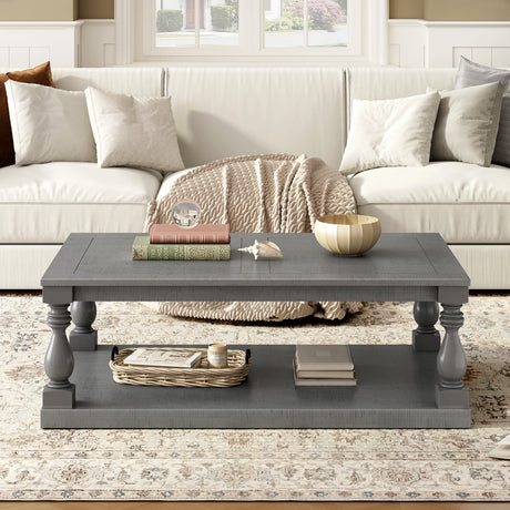 Rustic Solid Wood Coffee Table with Open Shelf – 47.2"
