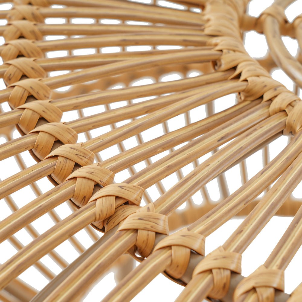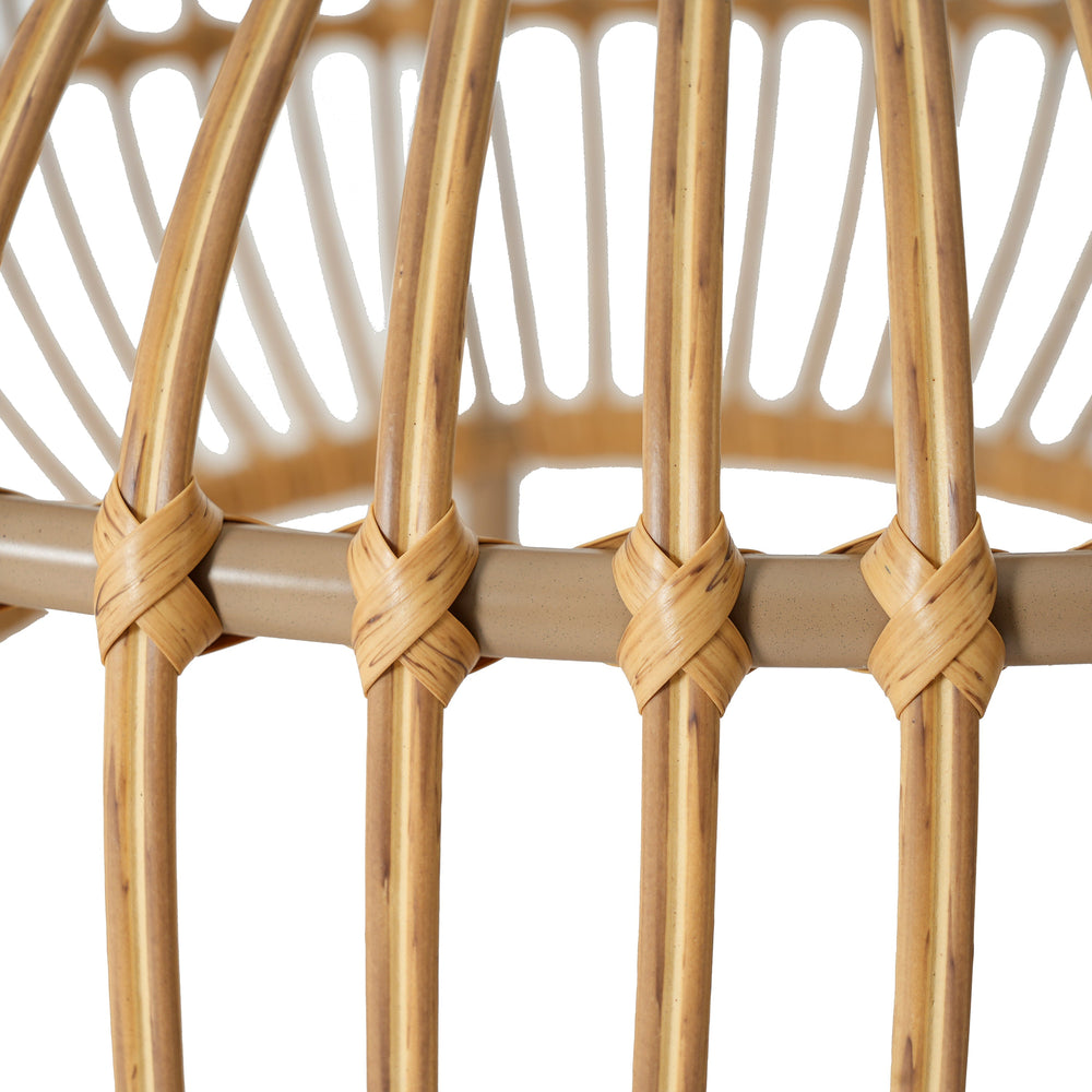 This coffee table features a bohemian-inspired faux rattan weave design, ideal for both indoor and outdoor living spaces. Its light brown color and airy structure add a touch of rustic elegance to patios, living rooms, or sunrooms.