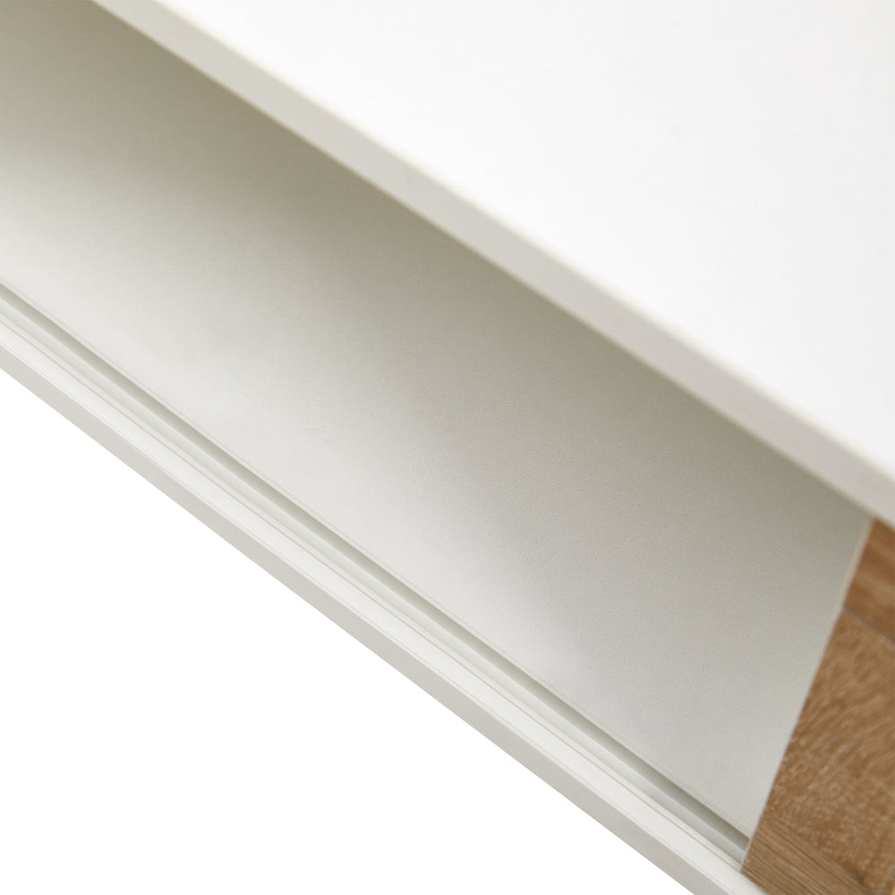 This modern rattan coffee table features a sliding door and blends seamlessly into living rooms, interiors, or office spaces, combining functional storage with a stylish design.