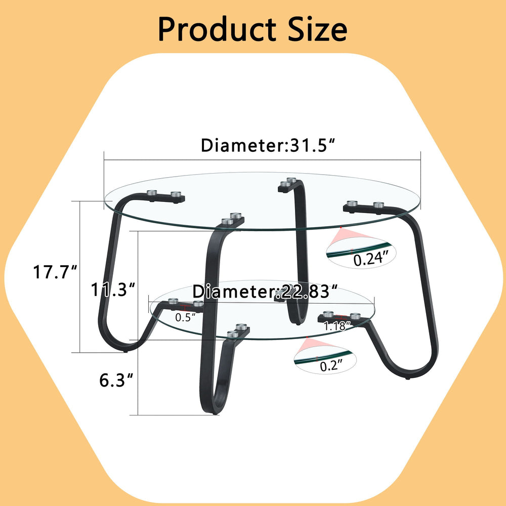 Retro Minimalist Style Metal Frame Double Layer Tempered Glass Coffee Table - Black