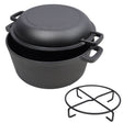 2 in 1 Pre-Seasoned Cast Iron Dutch Oven With Dual Handles, Outdoor Camping Deep Pot for Camping Fireplace Cooking BBQ Baking Campfire, 5 Quart.With 1pc Iron Pot Rack.