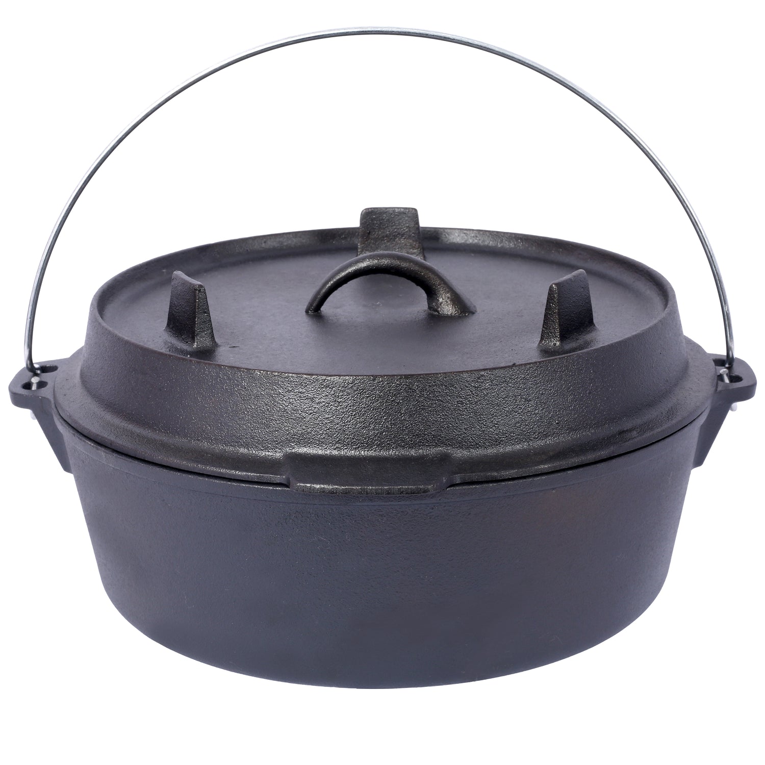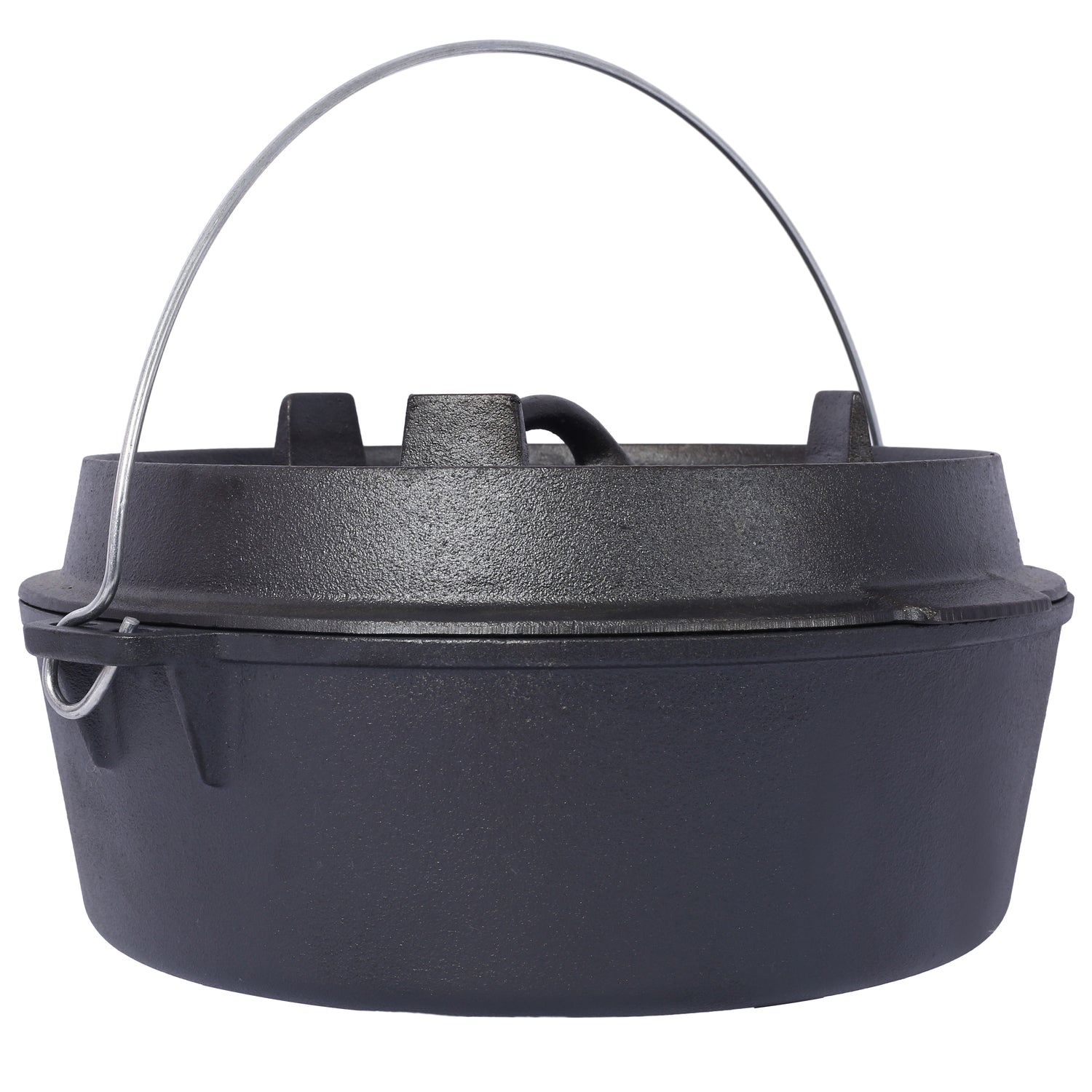 - Designed with convenience at its core, this cast iron Dutch oven features a robust built-in carrying handle, enabling you to effortlessly tote it from your vehicle to the campsite. Moreover, the oven can be securely suspended from a tripod stand on level surfaces, providing you with unparalleled flexibility in your cooking setup. With its seamless combination of portability and adaptability, this Dutch oven is the ultimate companion for any outdoor cooking enthusiast.