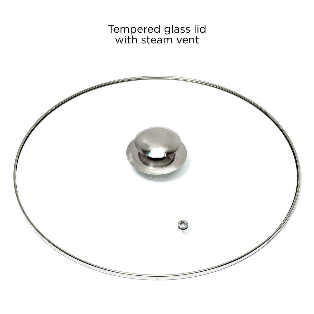 • Oven safe up to 450°F Tempered glass lid with steam vent