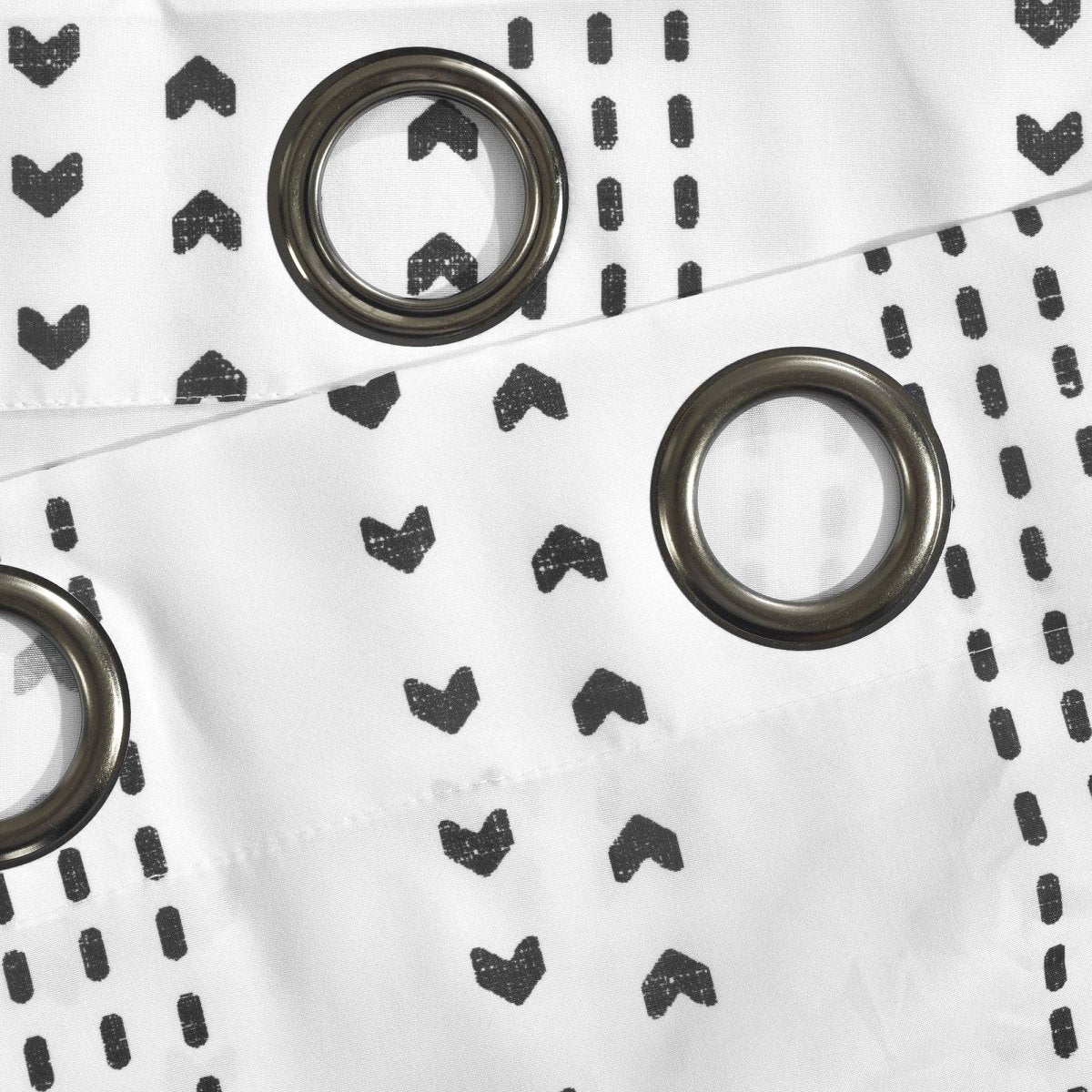 Hang the Hygge Stripe Window Curtain Panel Set by simply sliding the curtain rod through the metal grommets which have a diameter of about 1.6 inches. The grommet color is gun metal.
