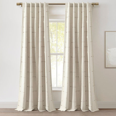 Farmhouse Button Stripe Yarn Dyed Woven Cotton Blend Window Curtain Panel Set