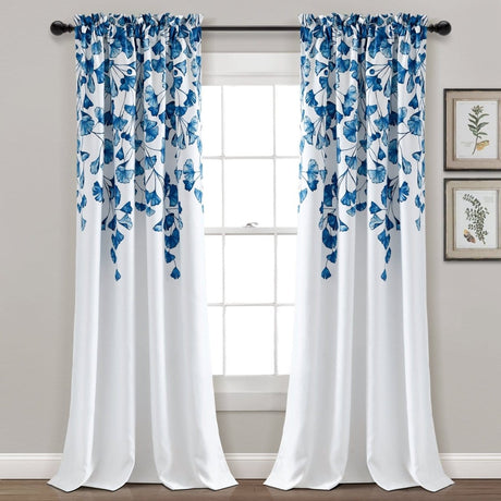 Farmhouse Ginkgo Leaf Light Filtering Window Curtain Panel Set