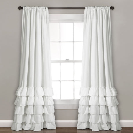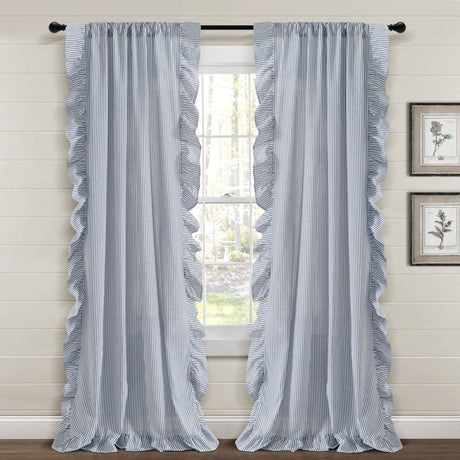 Farmhouse Stripe Reyna Ruffle Window Curtain Panel Set