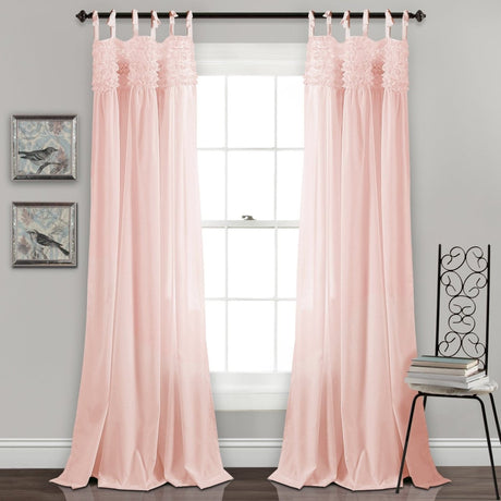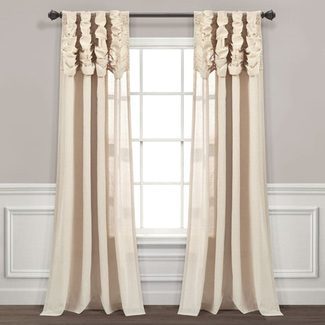 Ruched Waterfall Faux Linen Window Curtain Panel
