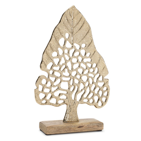 Modern metal leaf tree on wood base (set of 2)