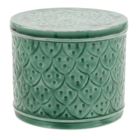 Metal patterned canister with natural wood lid (set of 2)