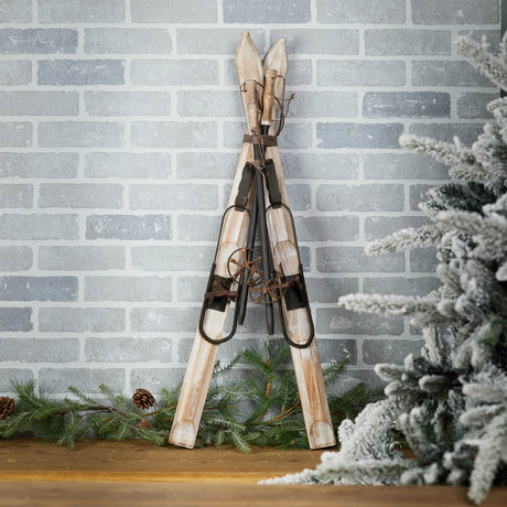 Decorative Pair of Skis and Poles 36"H Rustic Wood Finish