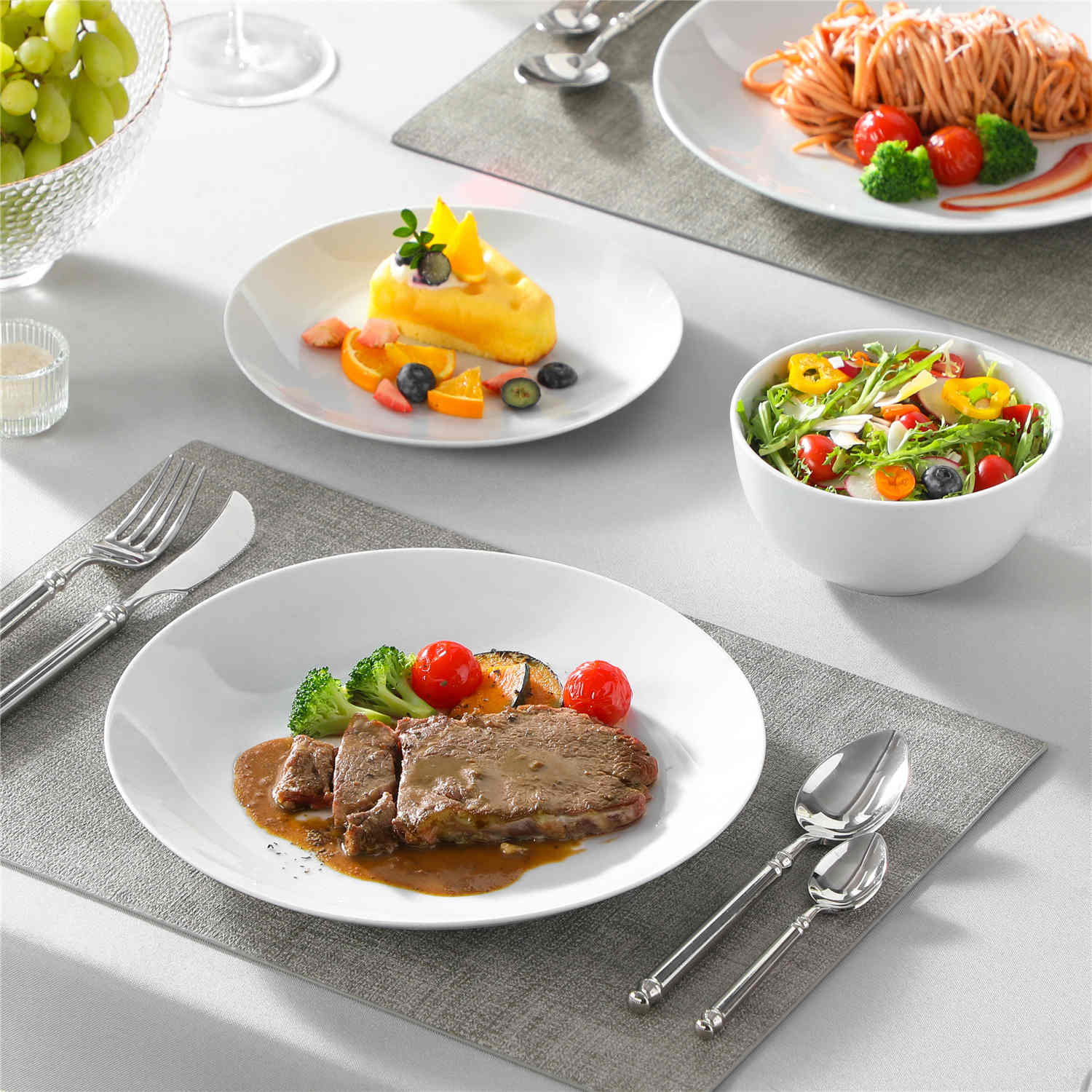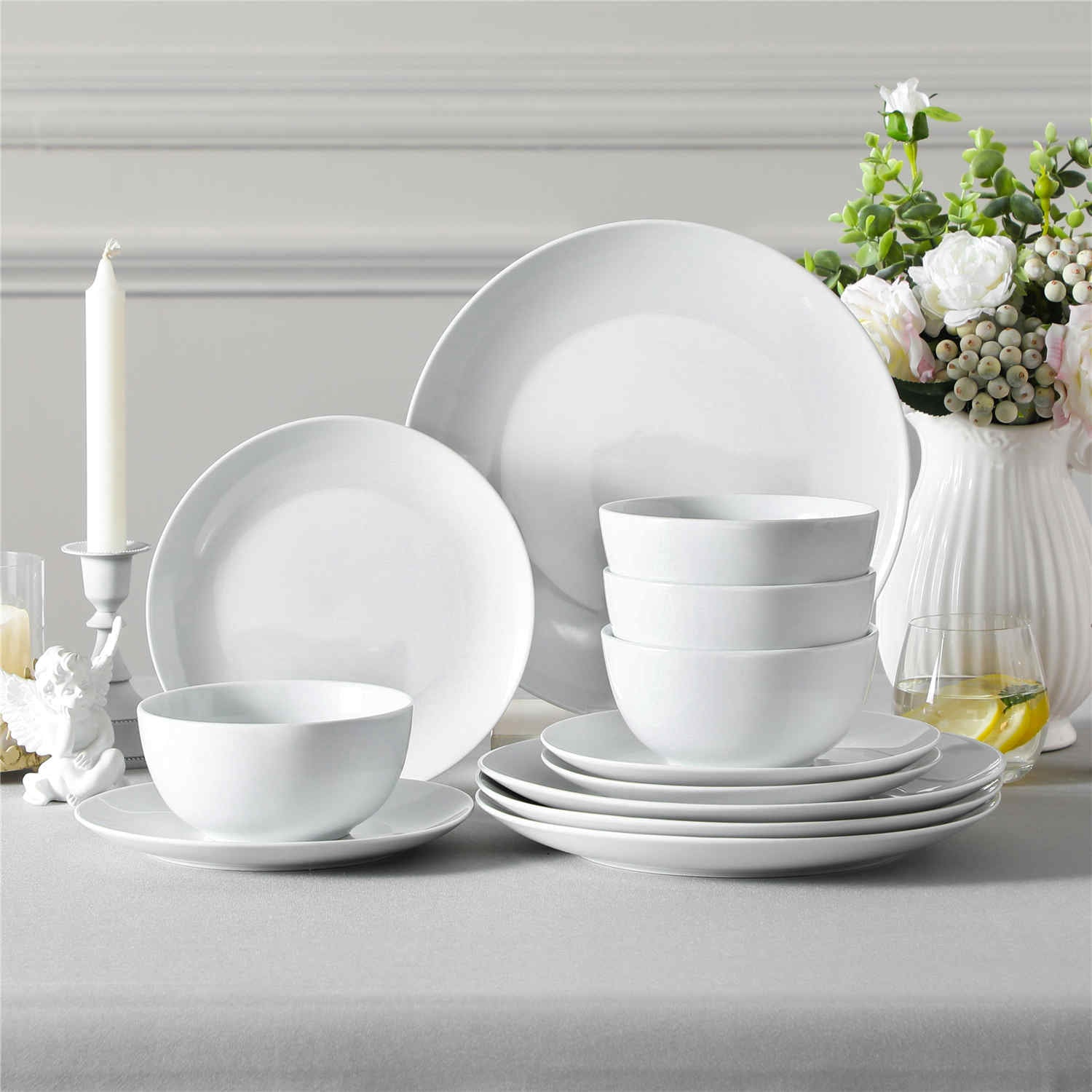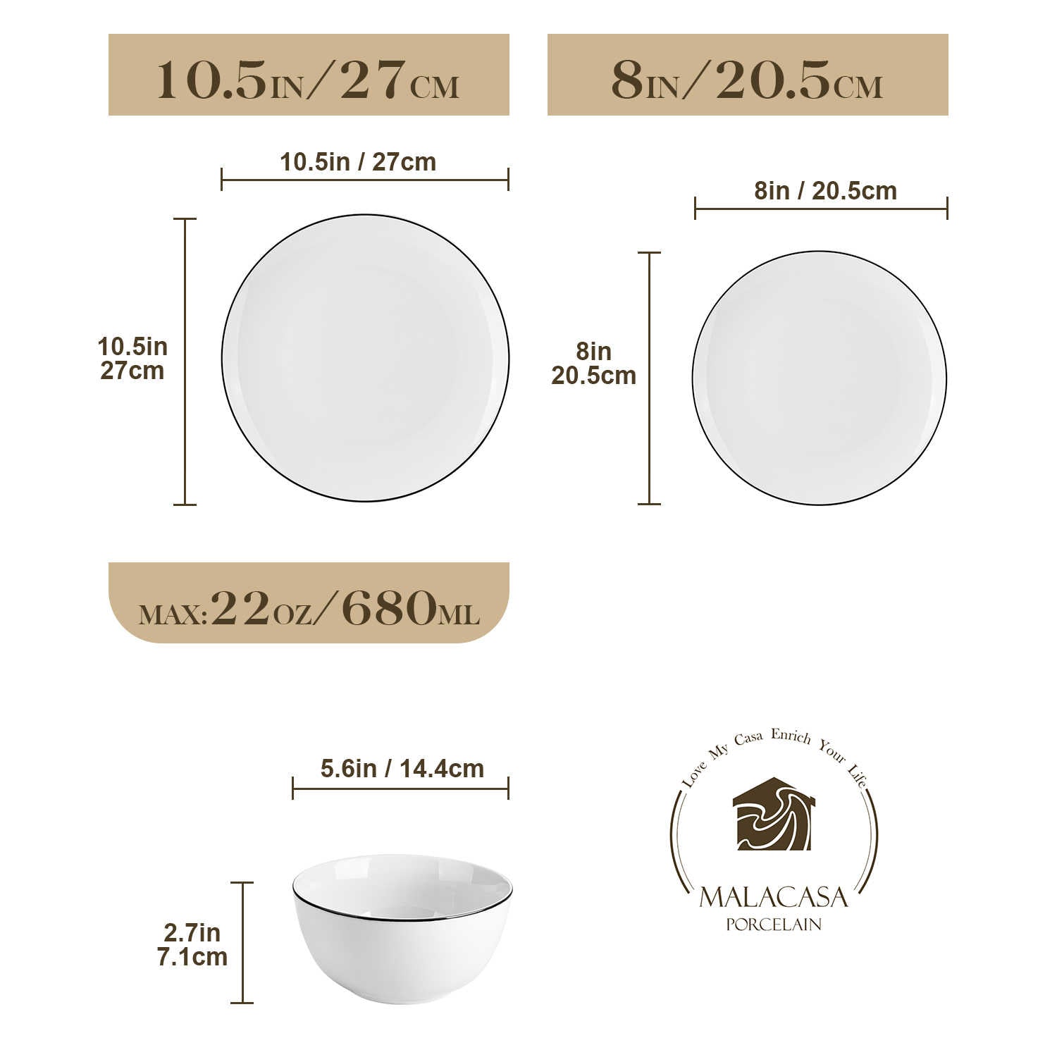 Crafted from hotel-grade white gourmet porcelain, this dinnerware set features an off-white hue with refined black trim accents for added sophistication. Fired at 2600°F, it ensures scratch resistance and is microwave and dishwasher safe, making it perfect for both residential and commercial use. Ideal for home dining, upscale hotel services, and elegant catering events, this set combines aesthetic appeal with practical functionality. Each piece is hand-finished to highlight artisanal craftsmanship, with occasional black spots that add unique charm without compromising functionality.