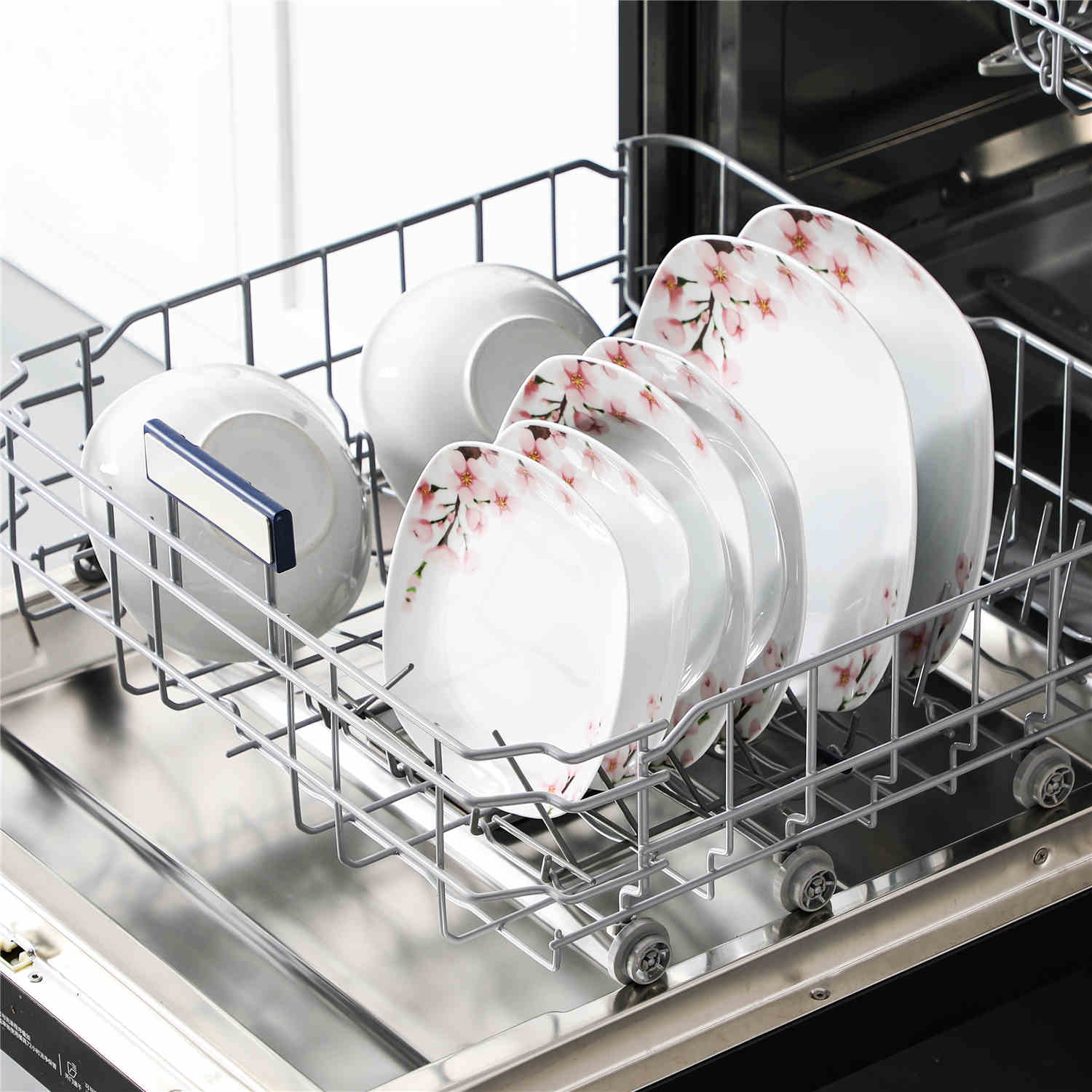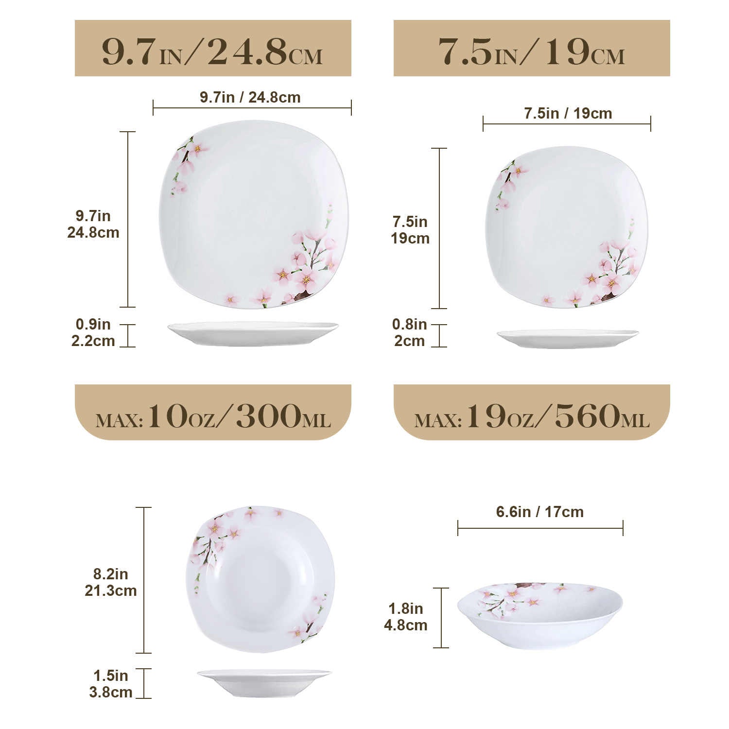 • Fine porcelain square dinnerware set, service for 6, pink floral pattern