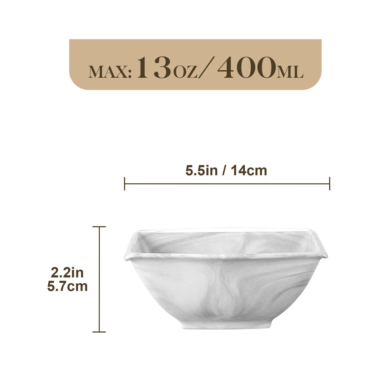 • Porcelain square cereal bowls, set of 6, marble grey/ivory white