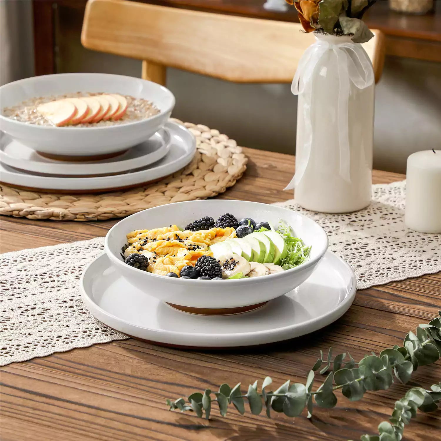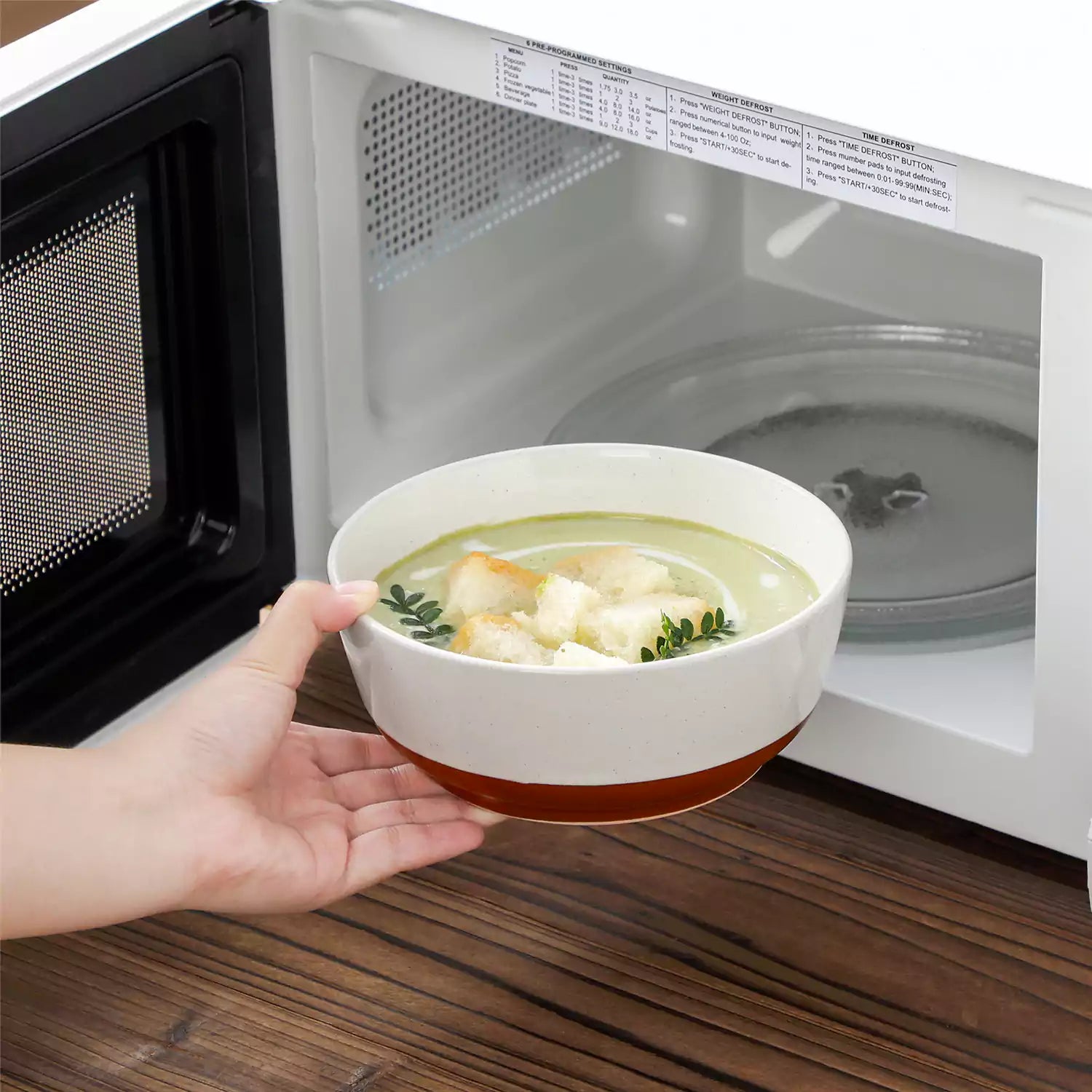 The ZORA 24-Piece Dinnerware Set brings effortless warmth and understated elegance to your table. Crafted from durable stoneware with a speckled sesame glaze and a matte clay-colored base, each piece features gently rounded edges and subtle handcrafted details. This set for 6 includes 6 dinner plates, 6 dessert plates, 6 cereal bowls, and 6 soup bowls, all microwave, oven, and dishwasher safe. Mix and layer the pieces to create a coordinated, inviting table that lets your food shine.