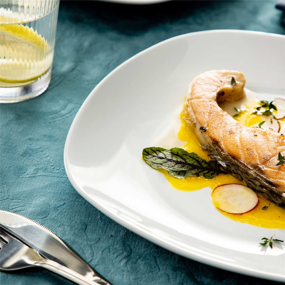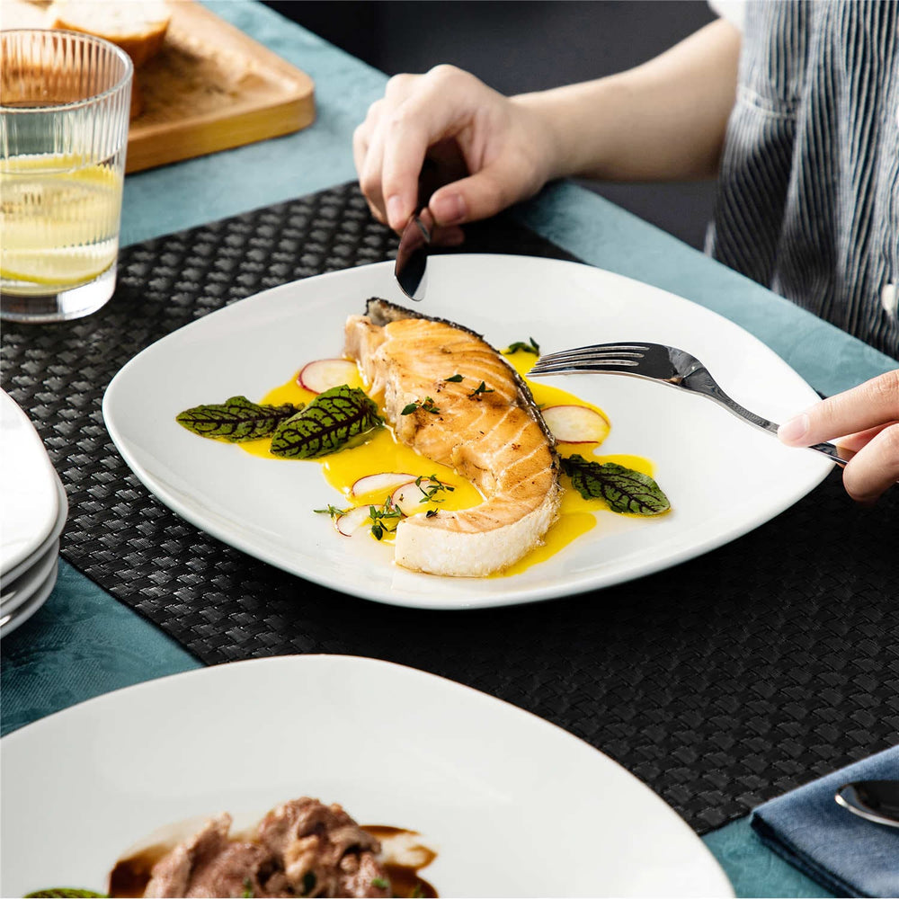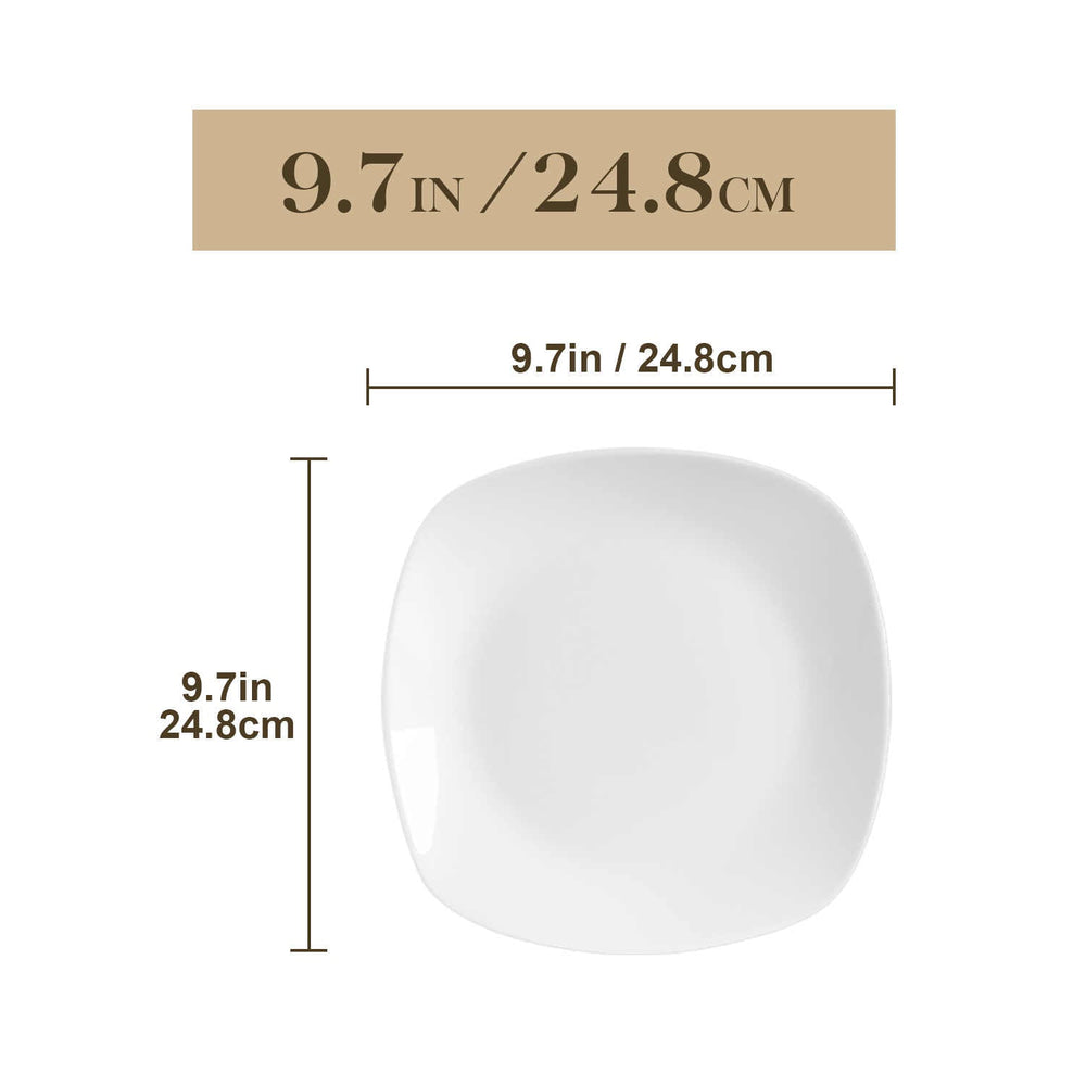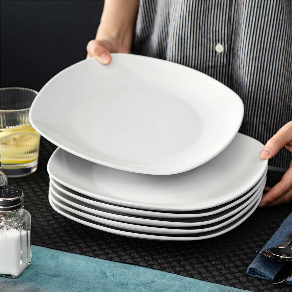 • Fine porcelain square dinner plates, set of 6, neutral white