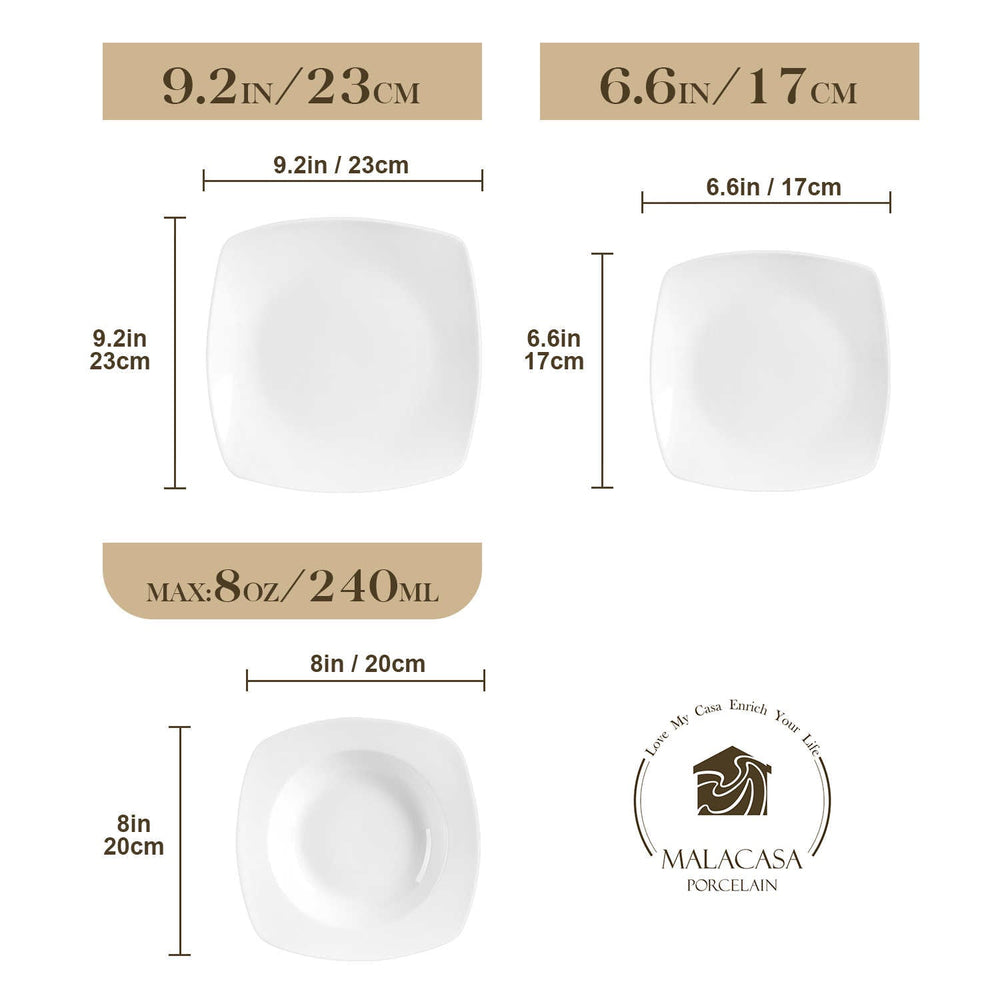 • Fine porcelain simple line edges square dinnerware set, service for 6, neutral white