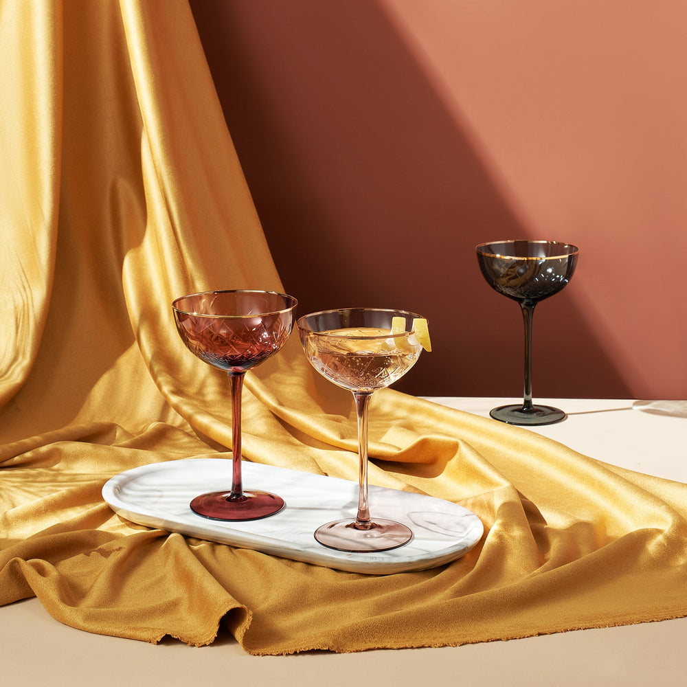 Tonal Gold Rim Champagne Coupe, Cocktail Glassware, Set of 6