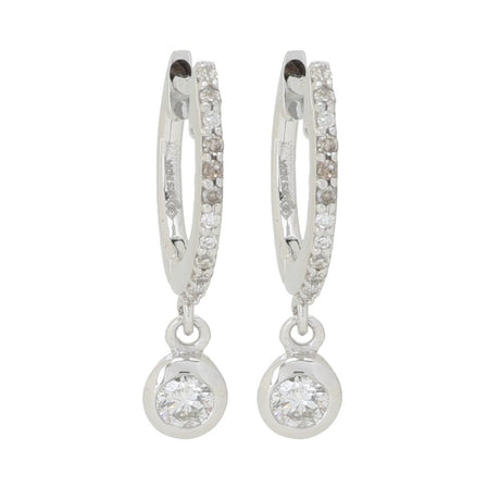 Diamond Treasures 0.34ctw Bezel Set Diamond Charm Huggie Hoop Earrings