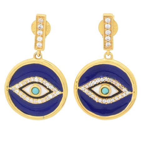 Choice of Plating Enamel, Campitos Turquoise & White Zircon Evil Eye Earrings