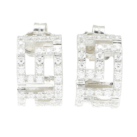 Sorrento Italian Silver 1.44 DEW Simulated Diamond Greek Key J-Hoop Earrings