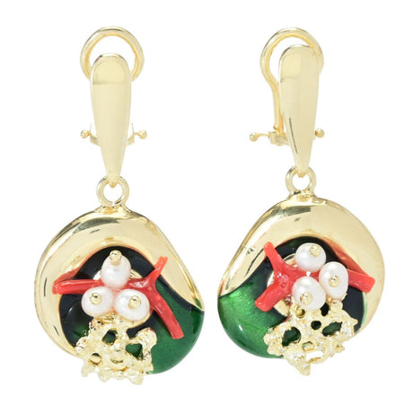 Graziella 23K Gold Plated Electroform Cultured Pearl Sea Life Earrings