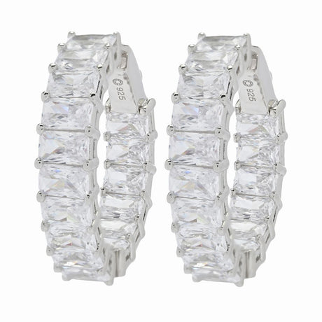 Brilliante Choice of Emerald or Oval Cut Simulated Diamond Hoop Earrings