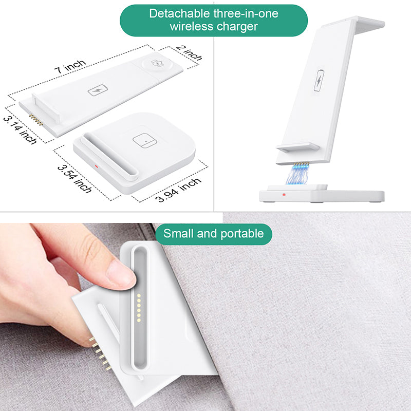 - 3-in-1 Fast Wireless Charging Stand for Phones, Apple Watch & AirPods