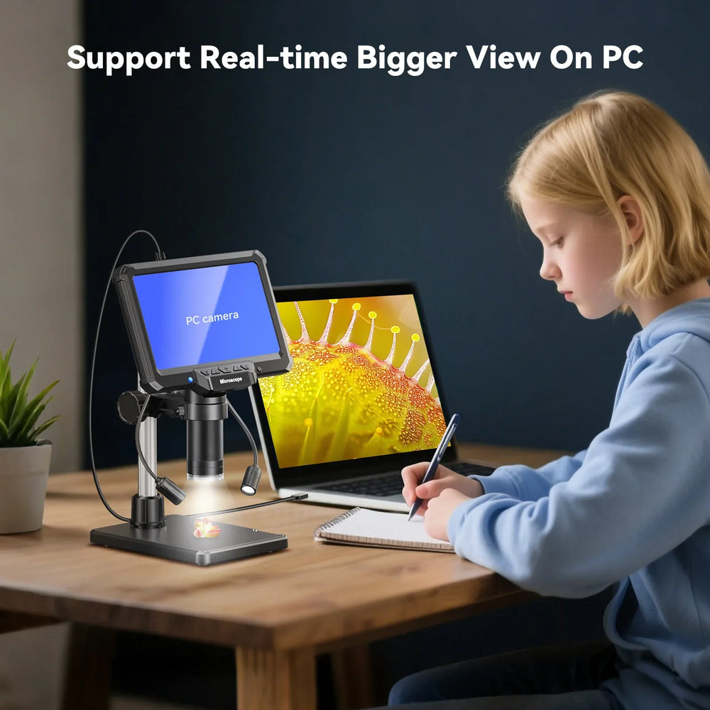 7 Inch Digital Microscope 1200X 16MP Coin PCB Soldering Repair Camera
