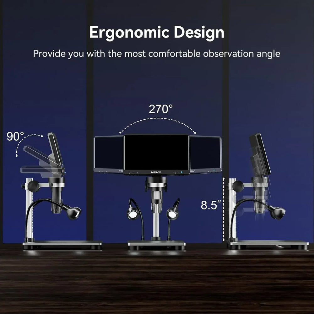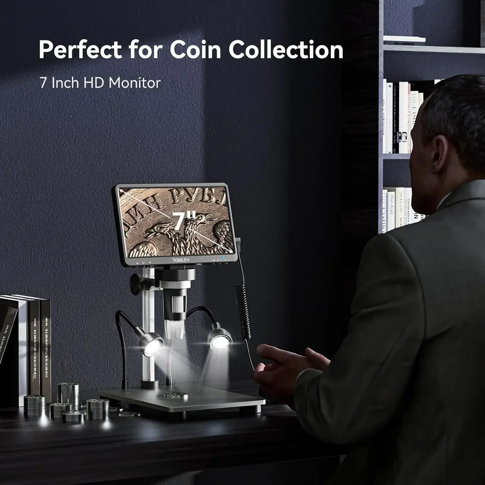 Inspect fine details with professional accuracy using this large-screen digital microscope designed for soldering, electronics repair, and coin inspection. The high-resolution display and precise focusing system deliver clear, stable visuals for detailed technical work.