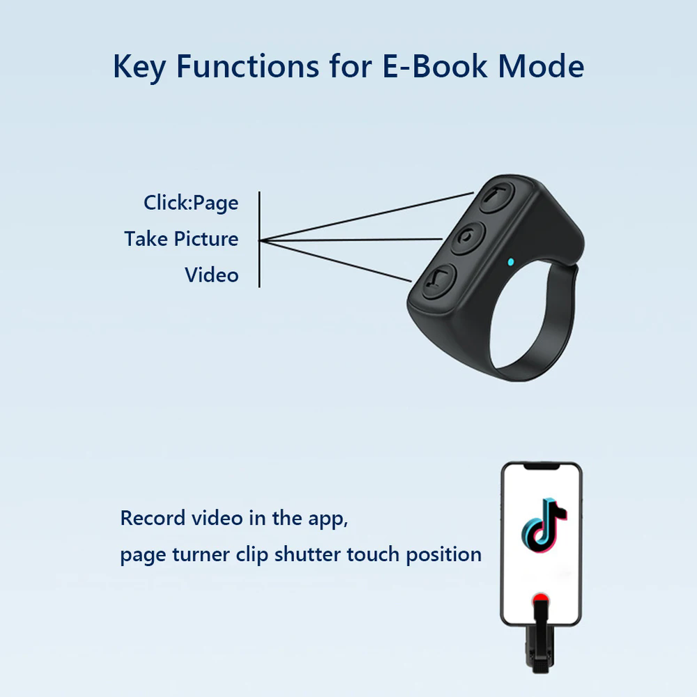 Bluetooth Page Turner & TikTok Scrolling Ring – Hands-Free Remote for Kindle, iPhone, Android – E-Reader Accessory, Selfie Shutter, Volume & Video Control