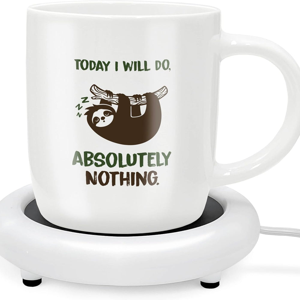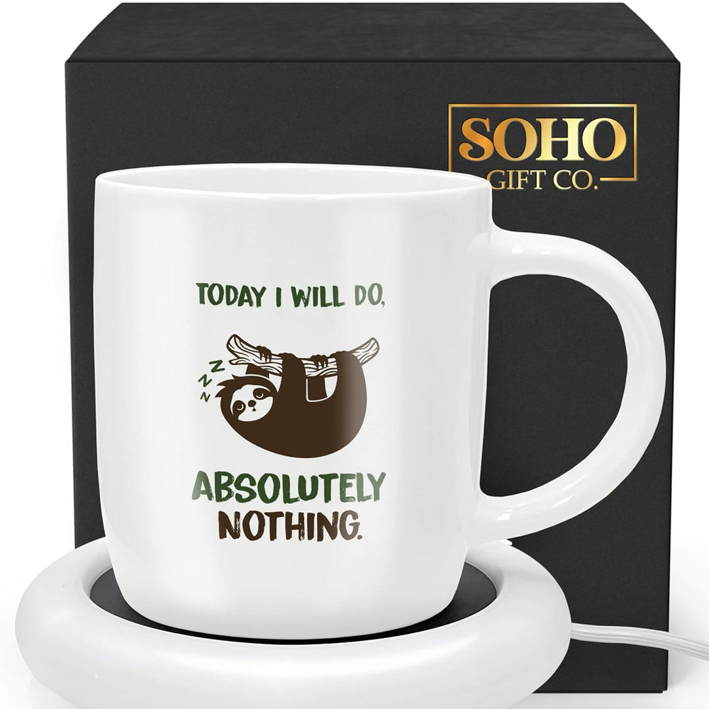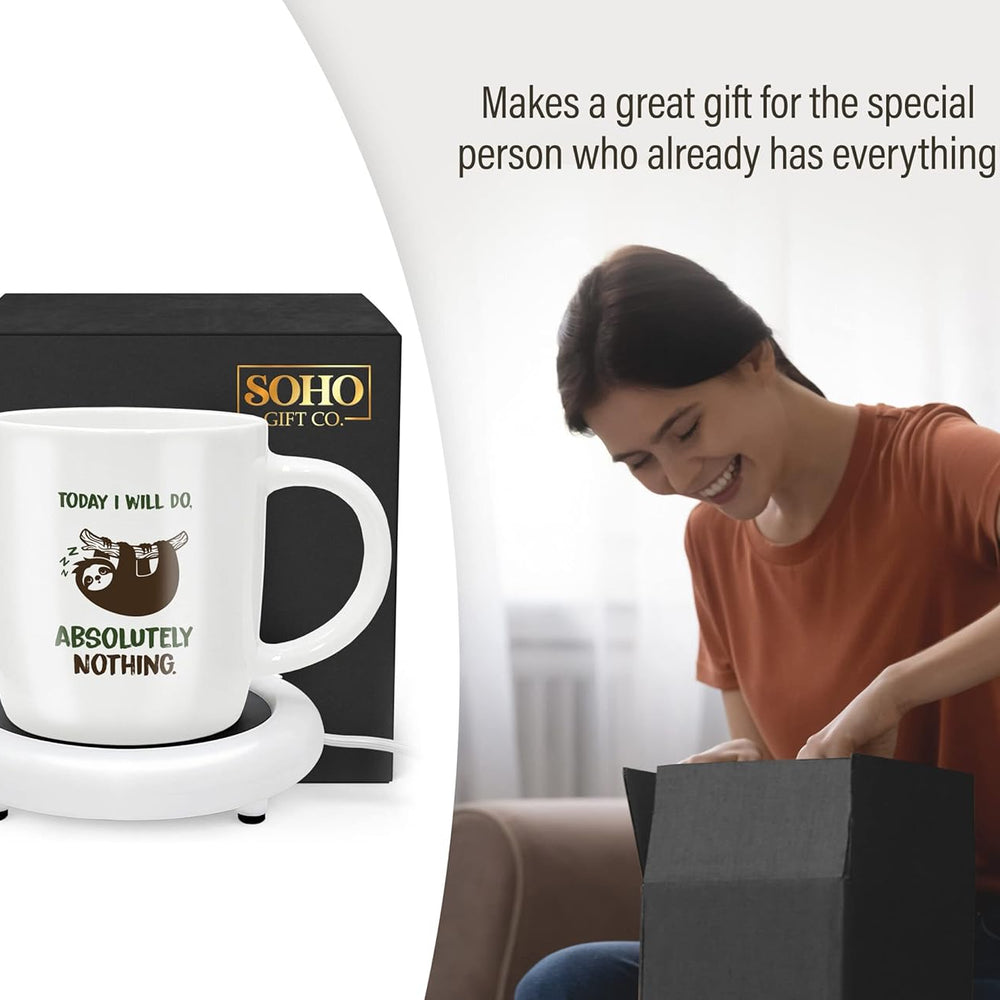 SoHo Funny Coffee Mug with Warmer, Electric Heated Cup for Coffee Lover Gifts for Men/Women/Birthday/Christmas, 12oz Today I Will Do Absolutely Nothing (Gift Boxed)