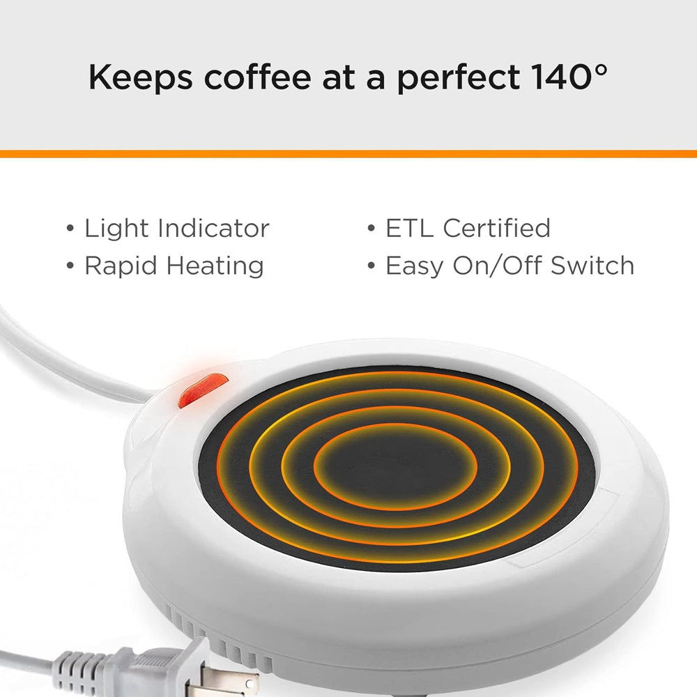 - Included is a 3.5" electric warmer to keep that cup of joe at the perfectly sippable 140 degree temperature.
