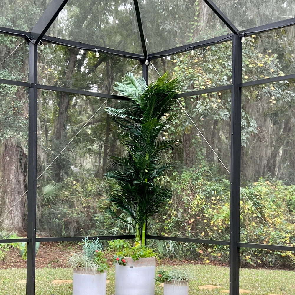 Bring a slice of paradise into your home. Make summer last faux-ever with this Double Cane Artificial Palm Tree. Inspired by tropical beaches and crafted from premium materials, place this tall faux palm tree in any space with high ceilings. Verdant leaves sprout from two lifelike trunks with naturally occurring details for a jungle, leafy look – without the maintenance. Feel free to shape the 40 bendable branches as you wish. Standing 10’ from a black nursery planter, DIY and add a vessel of your choice. Perfect for a living room, home office, or lonely corner in a foyer.