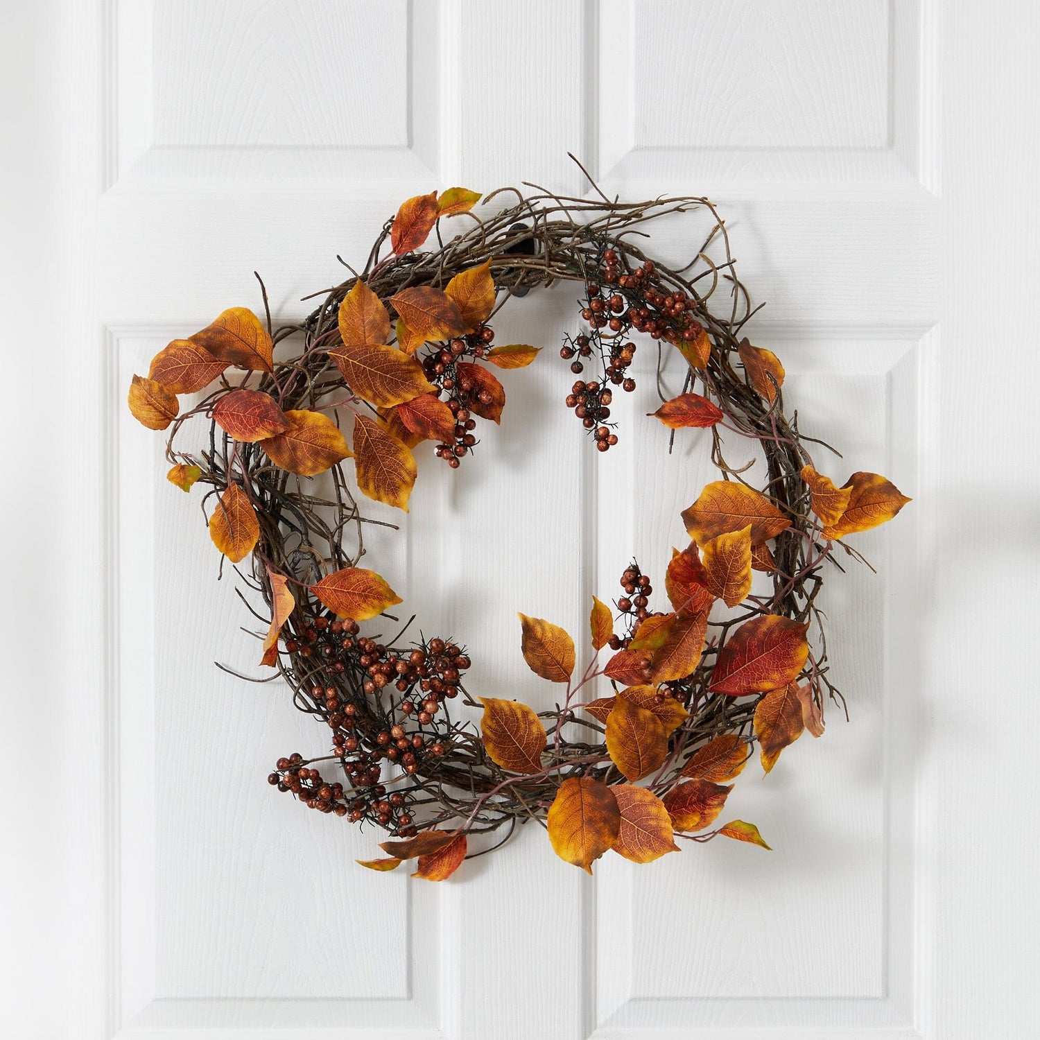 19” Harvest Leaf, Berries and Twig Artificial Wreath