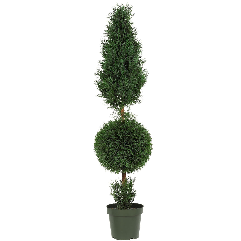 Reminiscent of the entrances and patios of exclusive Mediterranean restaurants, our Cypress Ball and Cone is stately and elegant. Standing over five feet tall and made to resemble evergreen cypress, this potted plant will proudly grace your home’s front entranceway, lending an air of distinction. For an even more stunning effect, pair them on either side of an entryway.