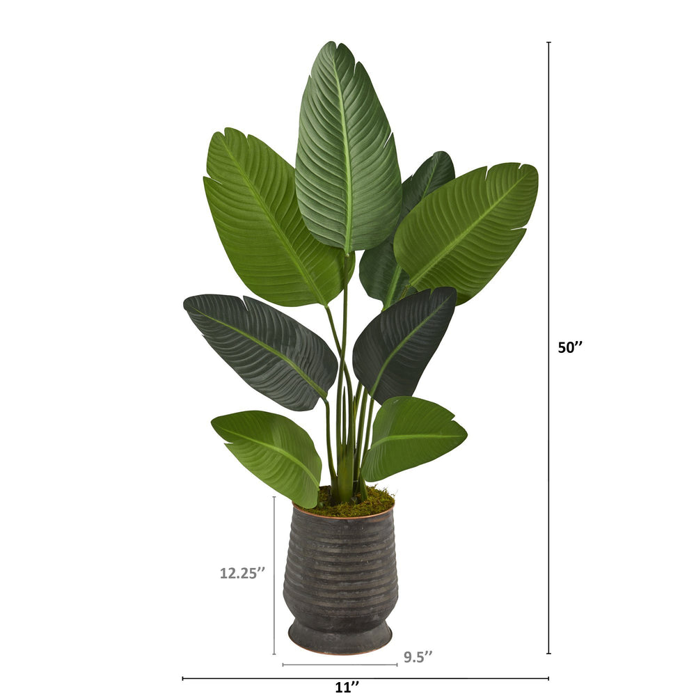 50” Travelers Palm Artificial Tree in Ribbed Metal Planter