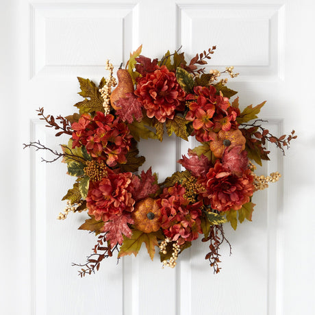 24” Peony, Hydrangea and Pumpkin Fall Artificial Wreath
