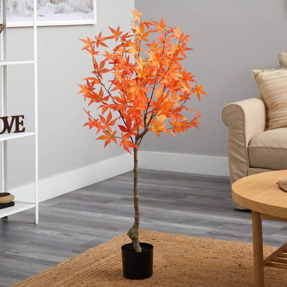 Remind yourself of the most spectacular foliage in the world with this Maple Artificial Tree. Inspired by the Northeast's landscape, bring the fall foliage home by injecting vivid colors in your space with these lifelike maple leaves assembled from high-quality materials. Standing 4' from a nursery planter (included in height), house in any compact area. Perfect for Thanksgiving, living rooms or a fall-inspired room.